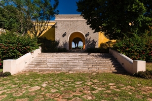En aquel período una hacienda mostraba poderío e imponencia, es por ello que se accede al proyecto a través de una escalinata central (semiderruida, se reconstruye) que remata en un gran marco de piedra.